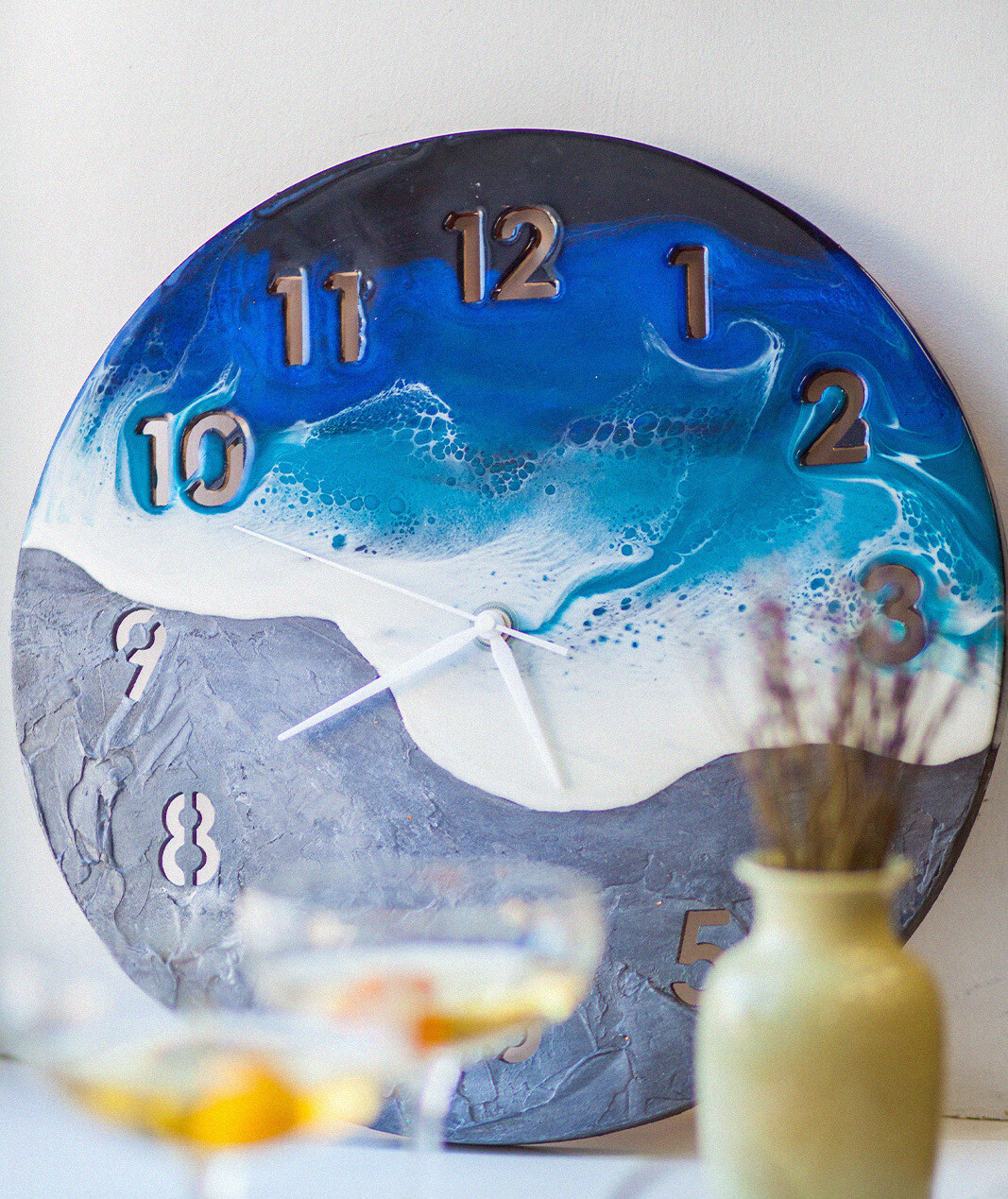 В этом модуле мы узнаем об особенностях создания интерьерных часов с эпоксидной смолой, разберем две техники заливки: